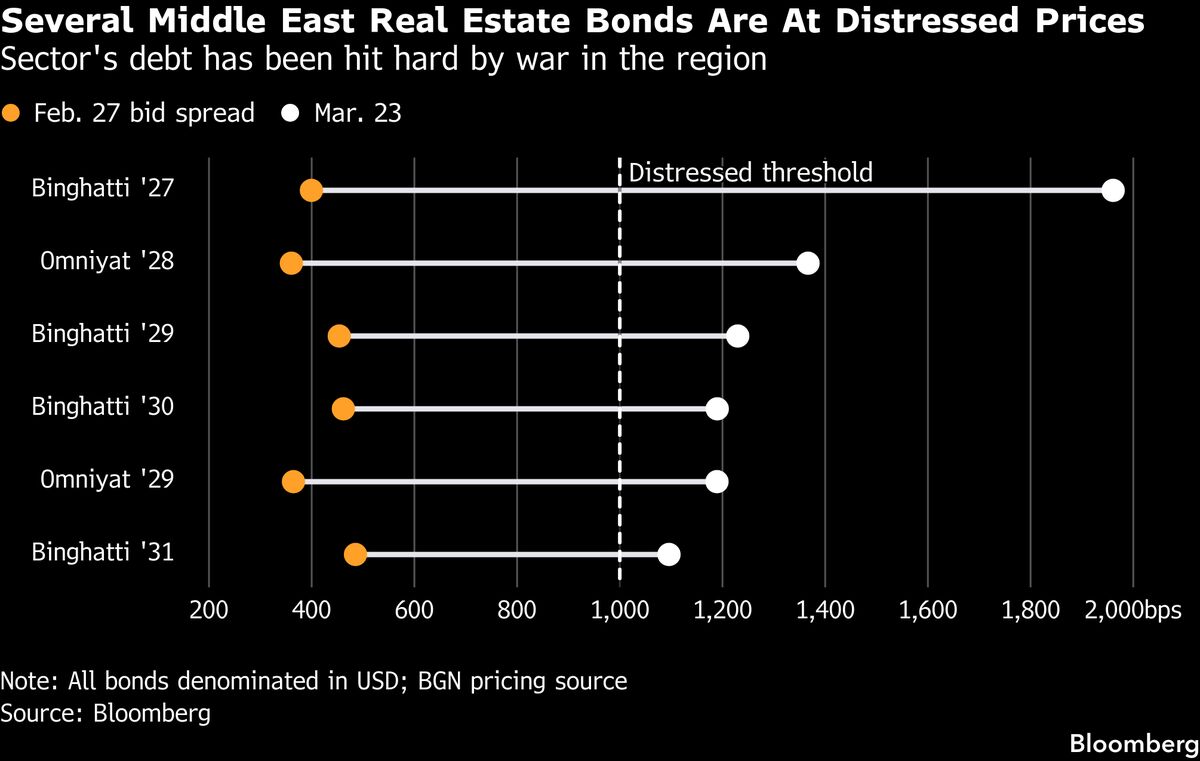 DUBAI, UAE – Bonds issued by two of Dubai’s largest property developers have tumbled into distressed territory, reflecting deepening investor unease over credit risks and refinancing challenges as the Middle East conflict enters its fourth week with no clear resolution in sight. The sharp selloff underscores growing concerns that the prolonged geopolitical turmoil could destabilize the region’s fragile economic recovery, particularly in Dubai’s once-booming real estate sector.