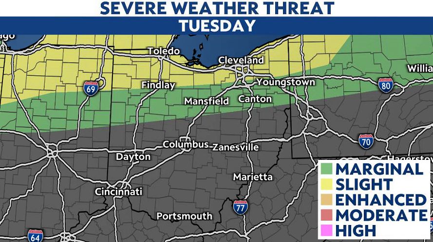 Ohio residents, particularly those in the northern part of the state, should brace for severe weather Tuesday as a potent storm system moves through the region. Unseasonably warm temperatures and increased moisture are fueling the threat, bringing risks of damaging winds, large hail, and even isolated tornadoes.